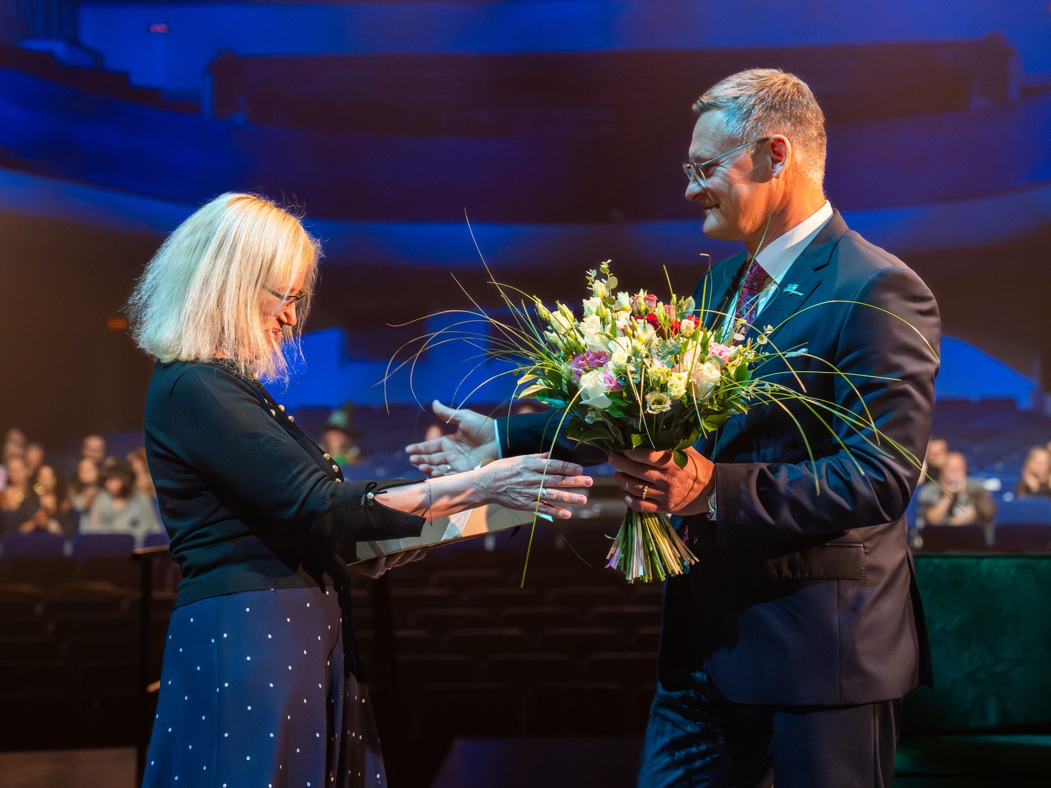 Paula Pļavniece, aktrise Karīna Tatārinova un aktieris, režisors, Latvijas Nacionālā kultūras